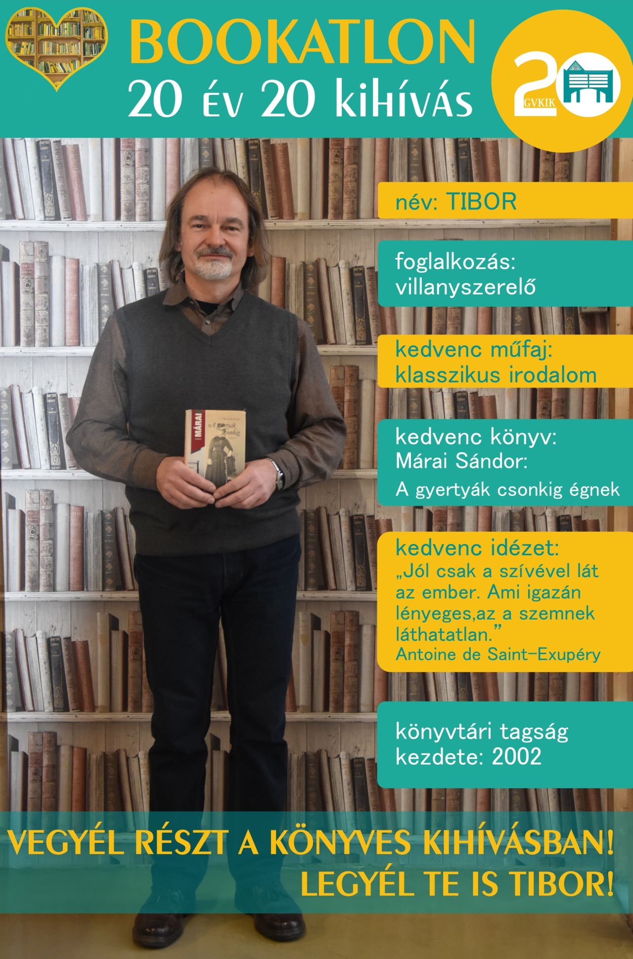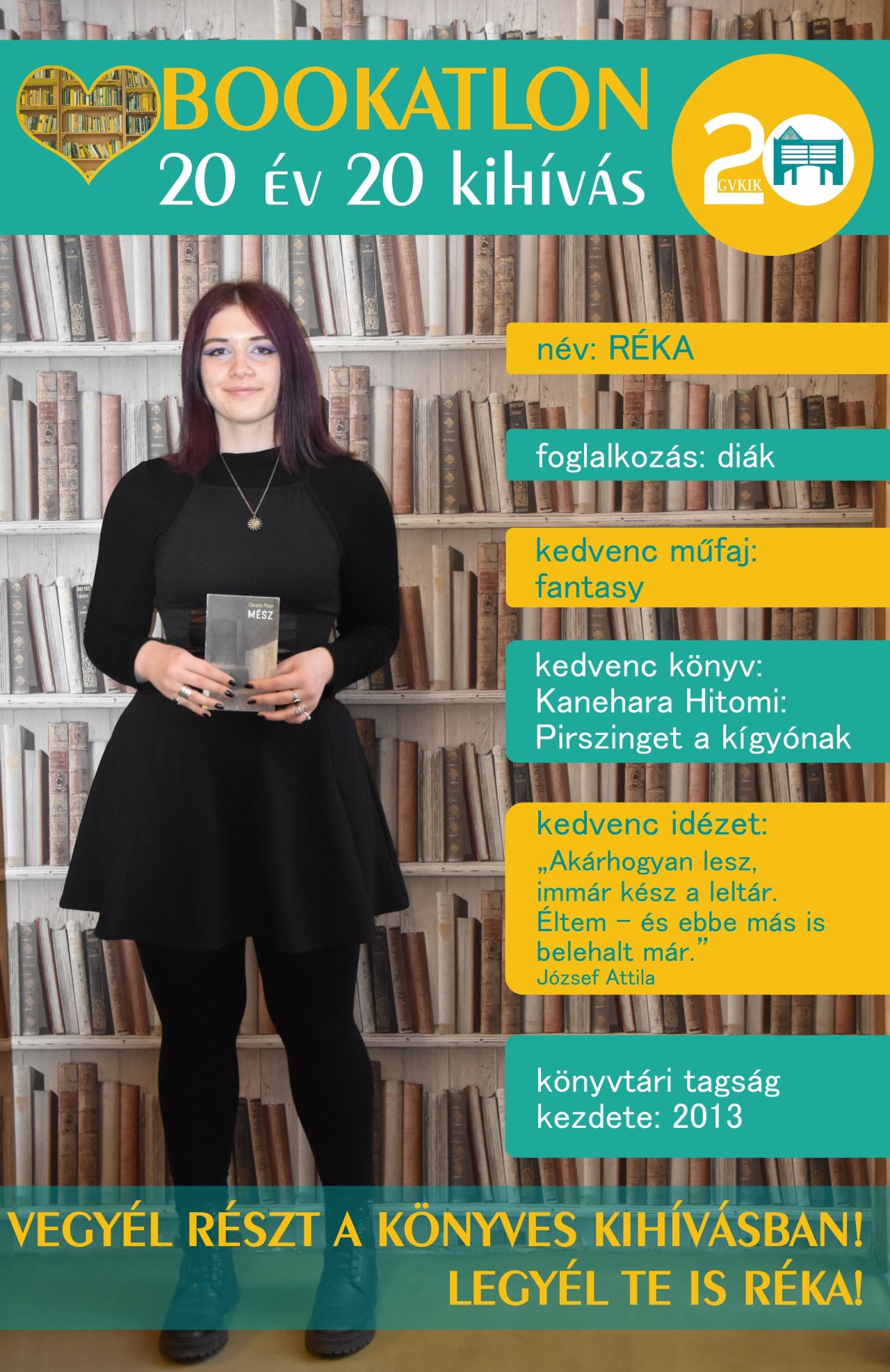 Bookatlon 20 év – 20 kihívás! Köszönjük, hogy ilyen sokan csatlakoztatok játékunkhoz! Természetesen folyamatosan várunk Benneteket, keressétek kedvenc könyvtárosotokat! Új játékosunk: Az egyik kihívás keretében …