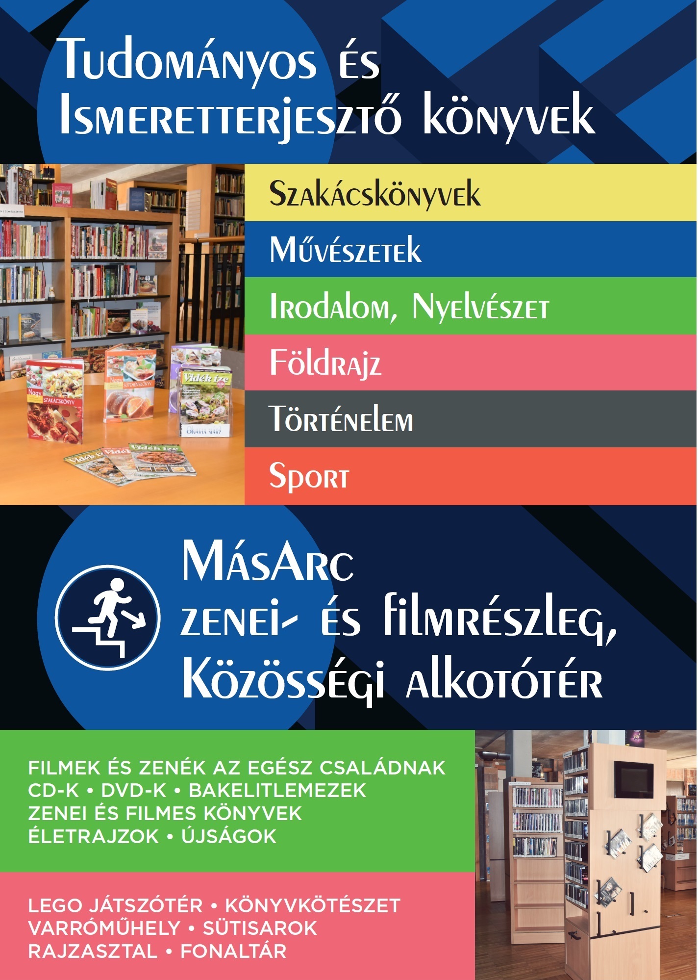 Zenei részlegünkön a látogatók 4200 db CD lemez közül válogathatnak. Filmgyűjteményünk 4300 db DVD-t tartalmaz.