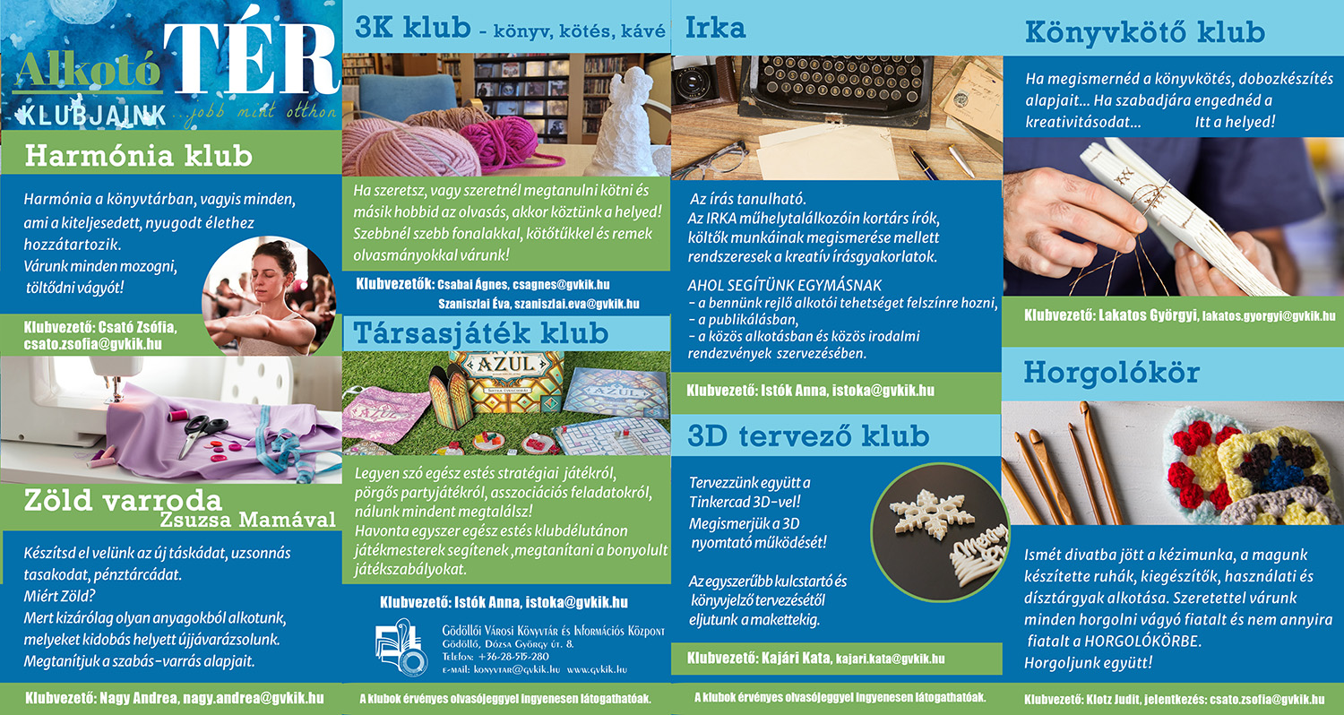 A könyvtár korábbi közösségépítő tevékenységére építve indult el az AlkotóTérben működő kisközösségek szervezése, megindult a klubélet: