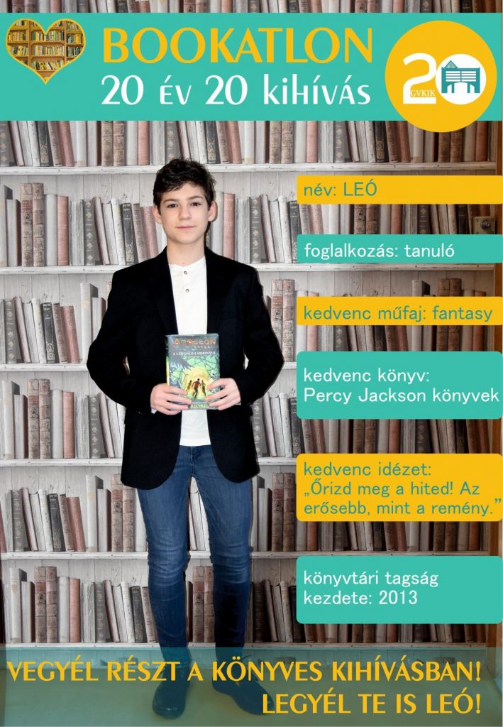 Útjára indul a Bookatlon 20 év-20 kihívás játékunk, ismerkedjetek meg közelebbről a könyvtárunkkal! Készítettünk egy pontgyűjtő füzetet nektek, melyben megtaláljátok a feladatokat. Pl. Kölcsönözz ki 20 könyvet, nézz meg egy kiállítást, kávézz egy könyvtárossal