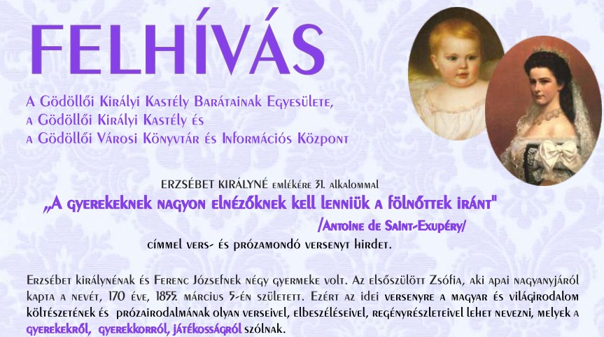 Harmincegyedik alkalommal rendezték meg az Erzsébet királyné tiszteletére meghirdetett vers- és prózamondó versenyt. A megmérettetés idei mottójául Antoine de Saint-Exupéry „A gyerekeknek nagyon elnézőknek kell lenniük a fölnőttek iránt.” gondolatát választották a szervezők: a Gödöllői Királyi Kastély Barátainak Egyesülete, a Gödöllői Királyi Kastély és a Gödöllői Városi Könyvtár és Információs Központ.