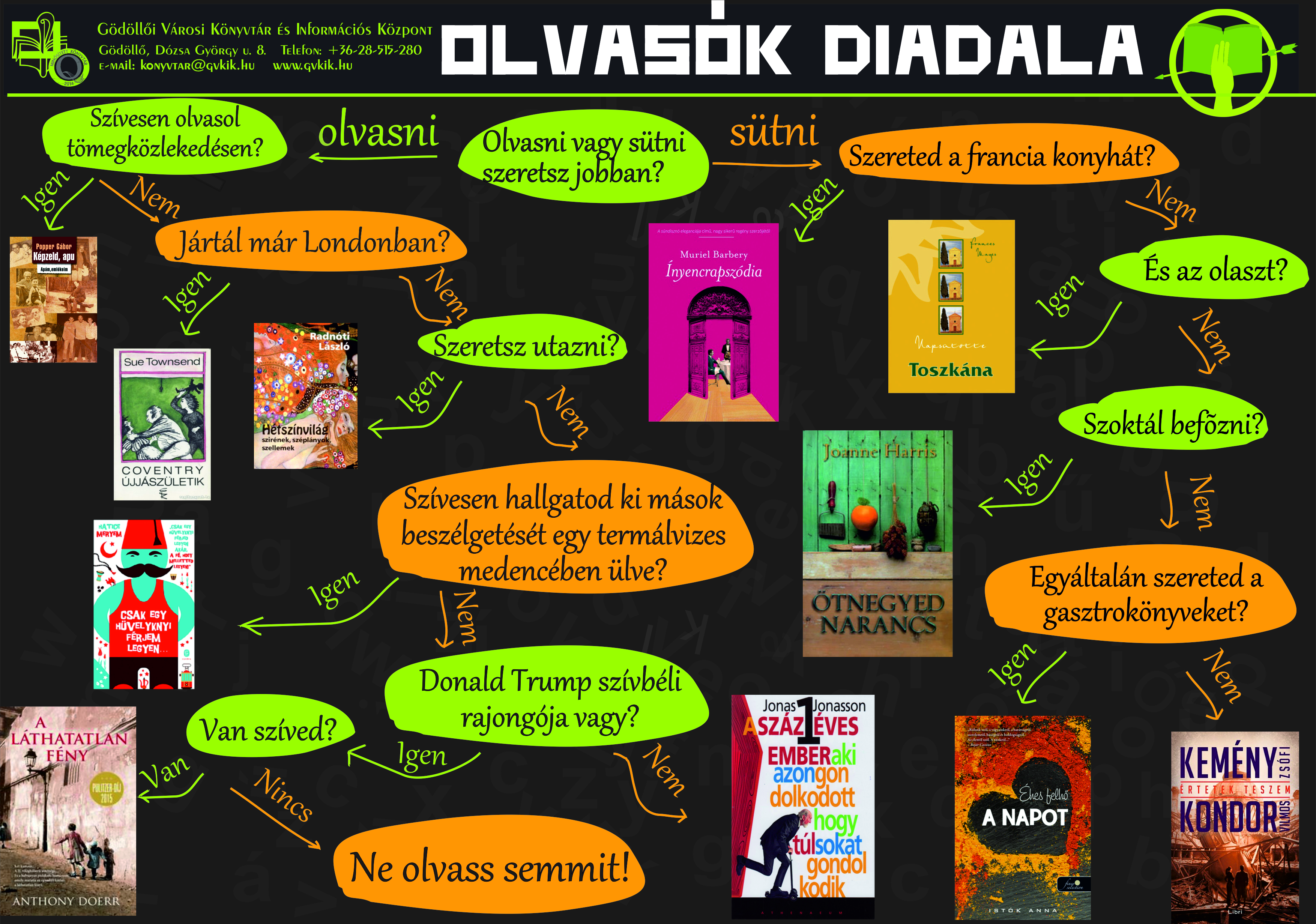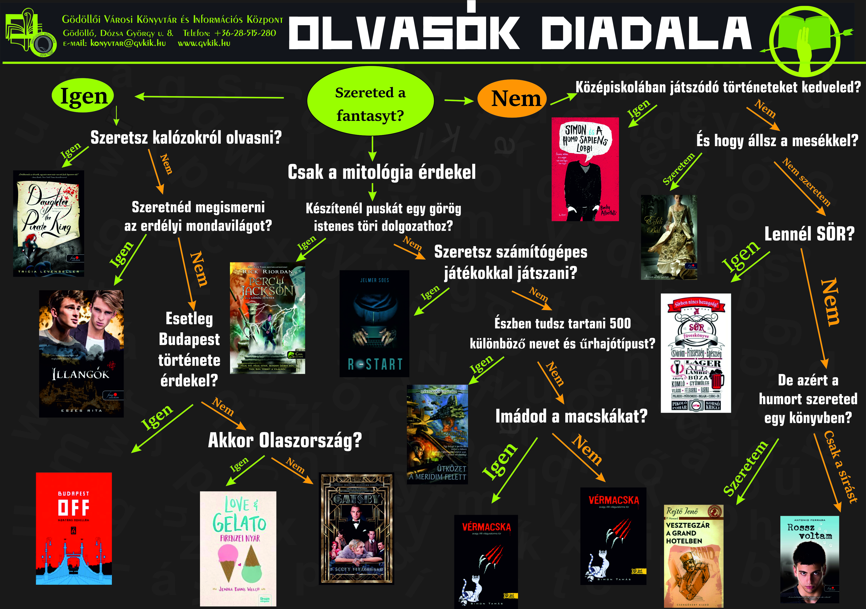 * Mindenképpen a könyvtáros segítségével válasszatok, rögzítenünk kell, mely könyveket foglaltátok le, mi fogjuk nektek később lefoglalni a honlapon. Kövessétek a zöld nyilat!