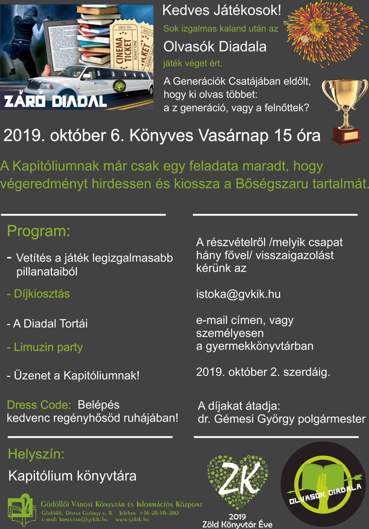 A Záró Diadal Napja október 6-án, vasárnap délután lesz. Minden játékost várunk szeretettel, aki addig túléli a viadalt!