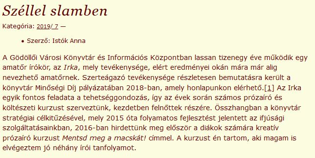 Megjelent: A Gödöllői Városi Könyvtár Kreatív író-olvasó kamasztáborának kiadványaként