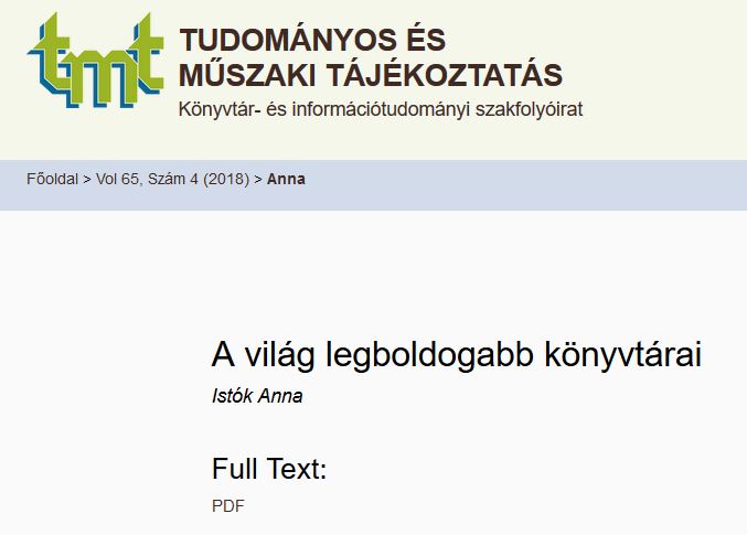 Megjelent: Könyv, Könyvtár, Könyvtáros, 2018. december, 27. évfolyam, 12. szám. 36-46. oldal