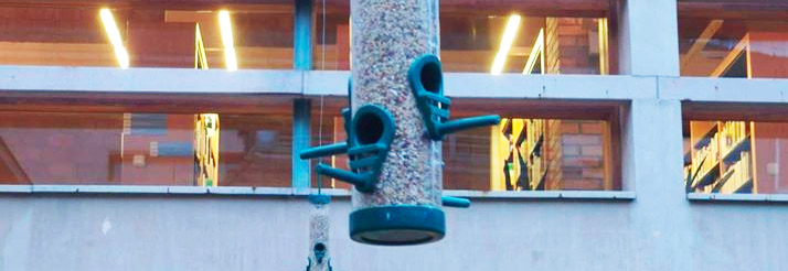Udvarunkat téliesítettük, és a madarak számára újrahasznosított anyagból készült etetőket helyeztünk ki.